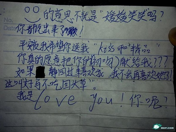 回复: 六年级小学生的“爱情”纸条~~雷死你~~看来我们老了啊~
