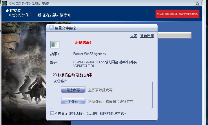 文件监控告知是病毒 但是点击清理 依然弹出【不处理】