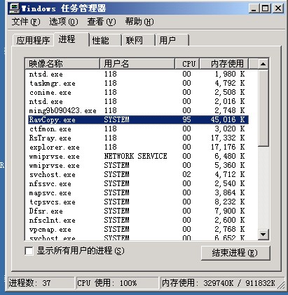 当启动虚拟机之后,瑞星自动升级,总会出现CPU100%的情况,造成电脑很卡,大约维持时间是2分~5分钟不等。