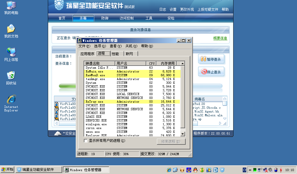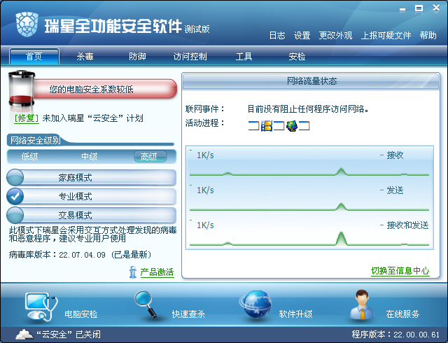 瑞星22.00.00.61版本对CPU的占用率再次降低
