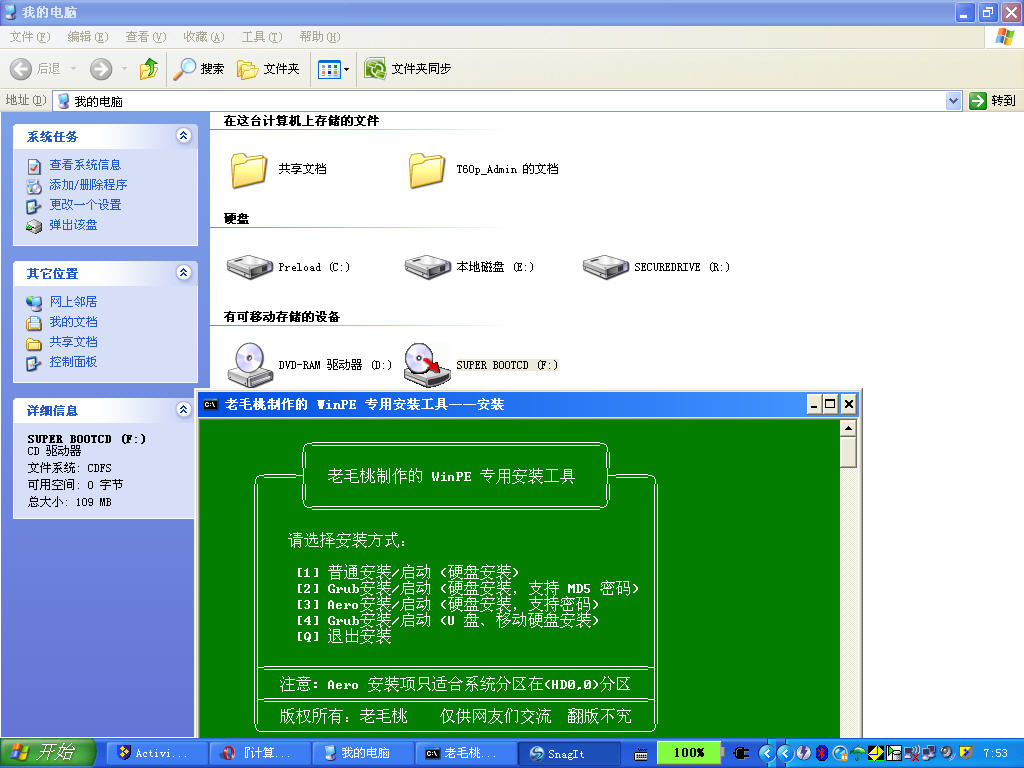 (3)、使用DAEMON Tools Lite的“虚拟CD/DVD-ROM”,装载映象winpeboot.iso。成功。其间,RAV2010很安静,无任何报警。