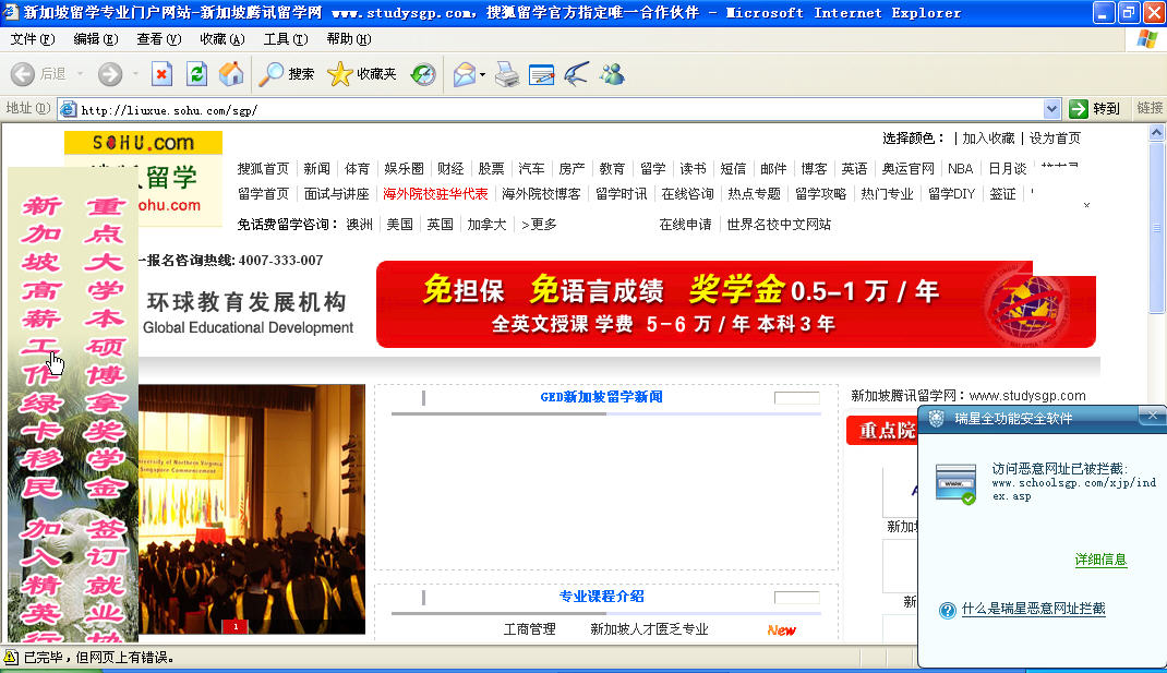 瑞星卡卡安全论坛技术交流区恶意网站交流 警惕“搜狐”留学网被挂马