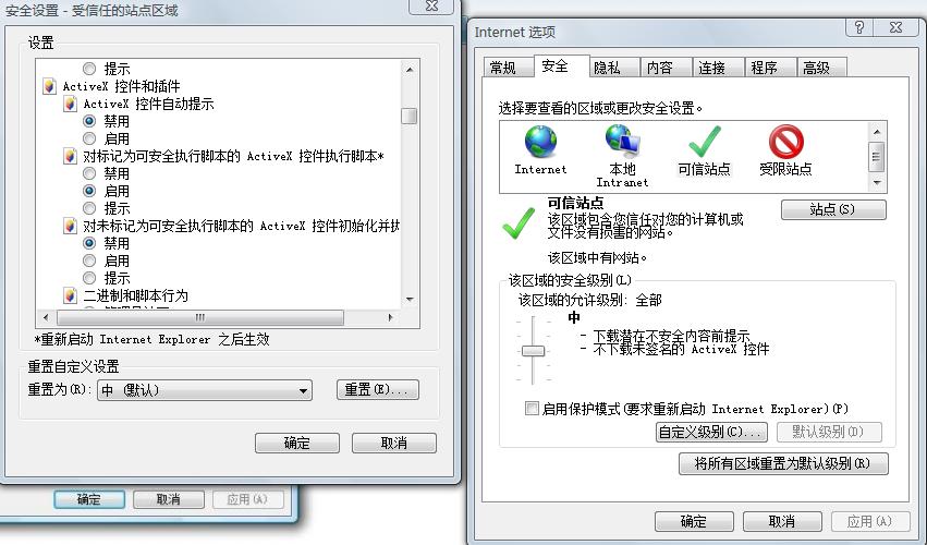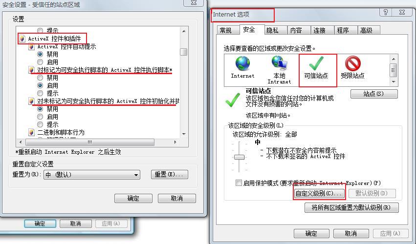 “对未标记为可安全执行脚本的Activex控件初始化并执行脚本”选择启用。