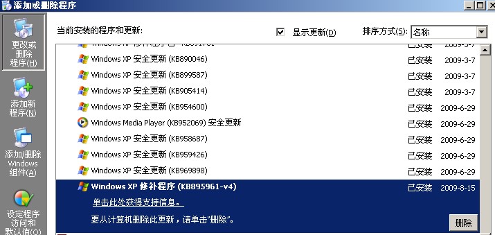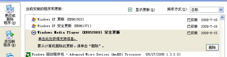 在开始_设置_控制面版_添加删除程序[显示更新]_看到有