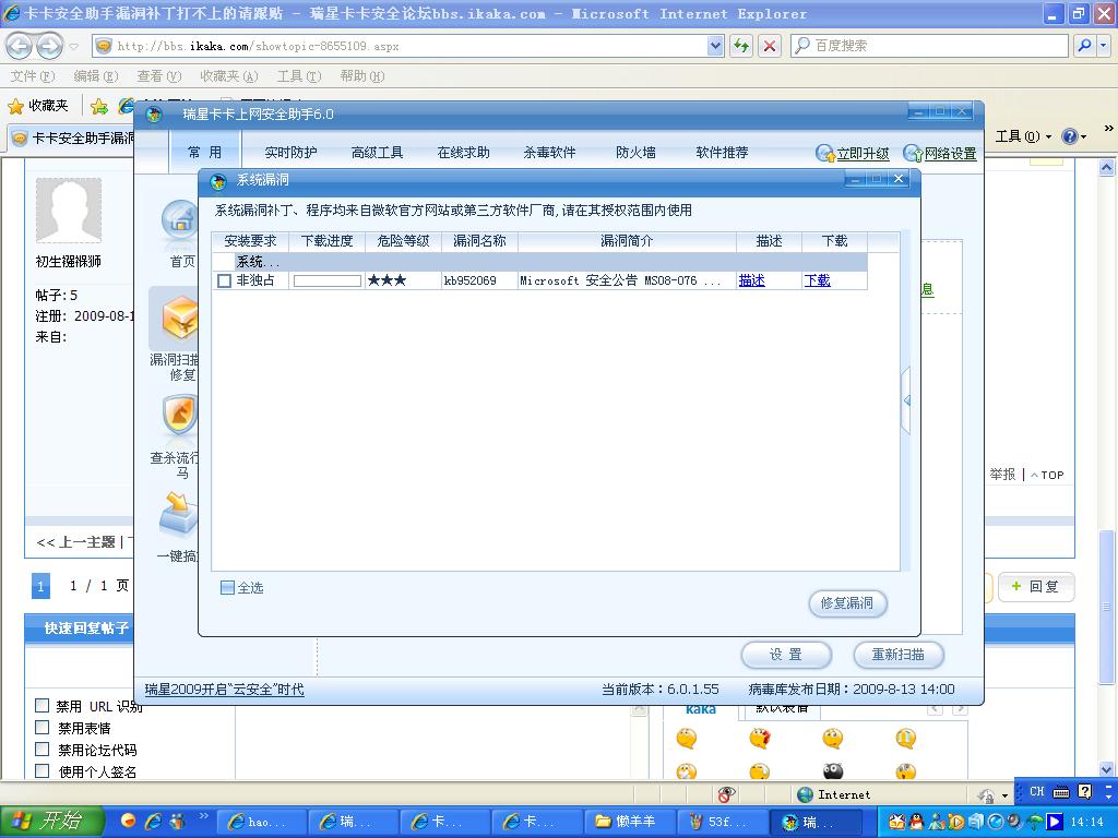 卡卡安全助手漏洞补丁打不上的请跟贴