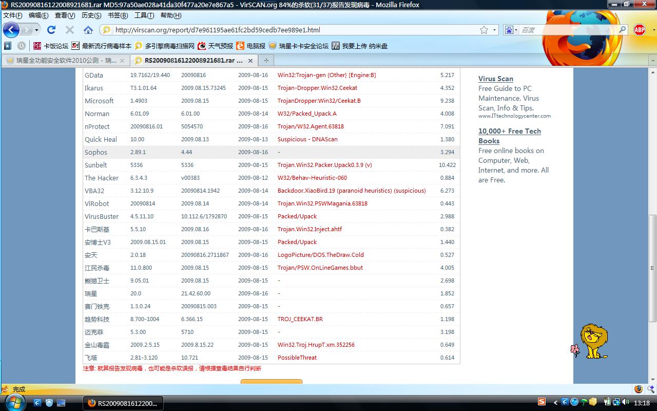 瑞星2009版查杀引擎测试