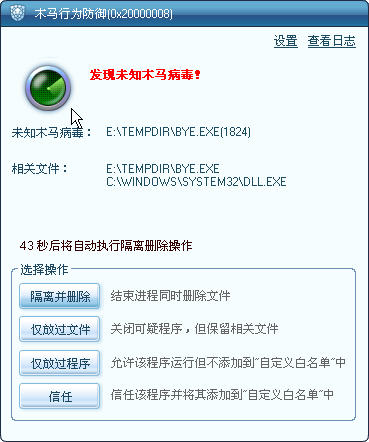 我的瑞星已是最新的!!!点击“删除并隔离” 瑞星进程挂掉了!!!