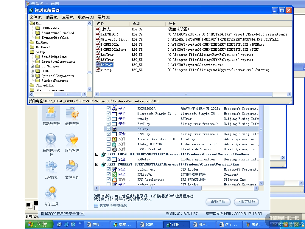 http://bbs.ikaka.com/showtopic-8442813.aspx#3637415再者 这些没用的注册表信息 用sreng清理了 SRENG工具》启动项目》注册表》