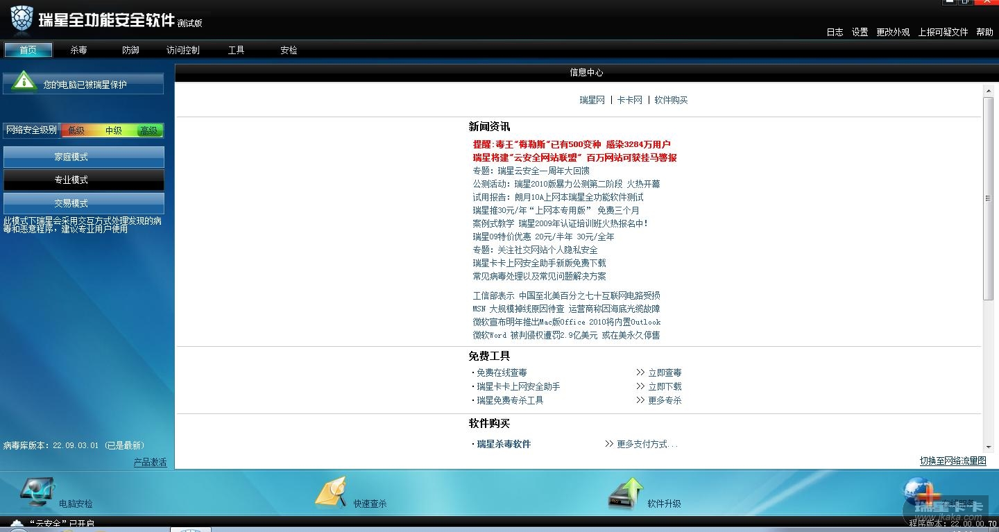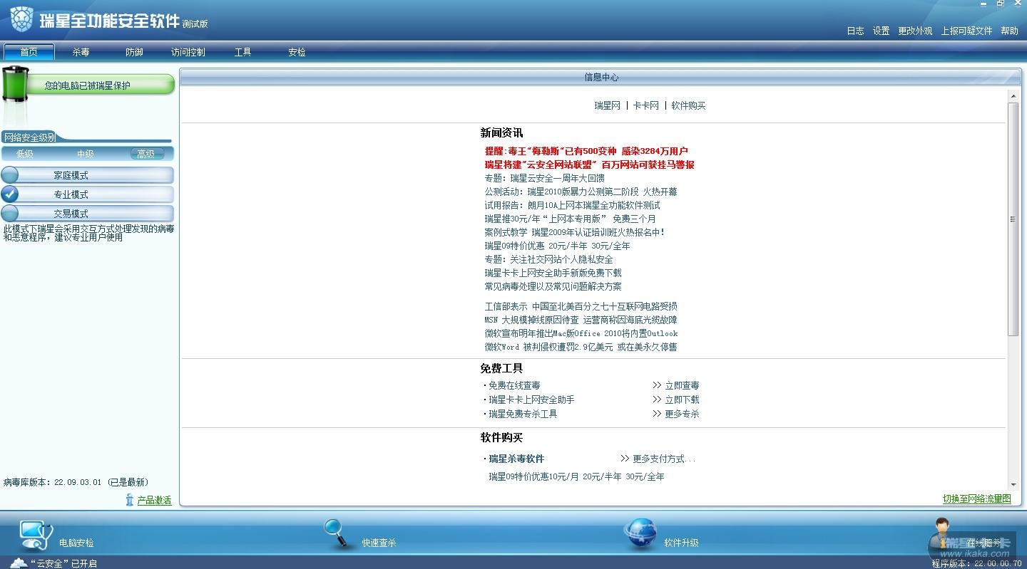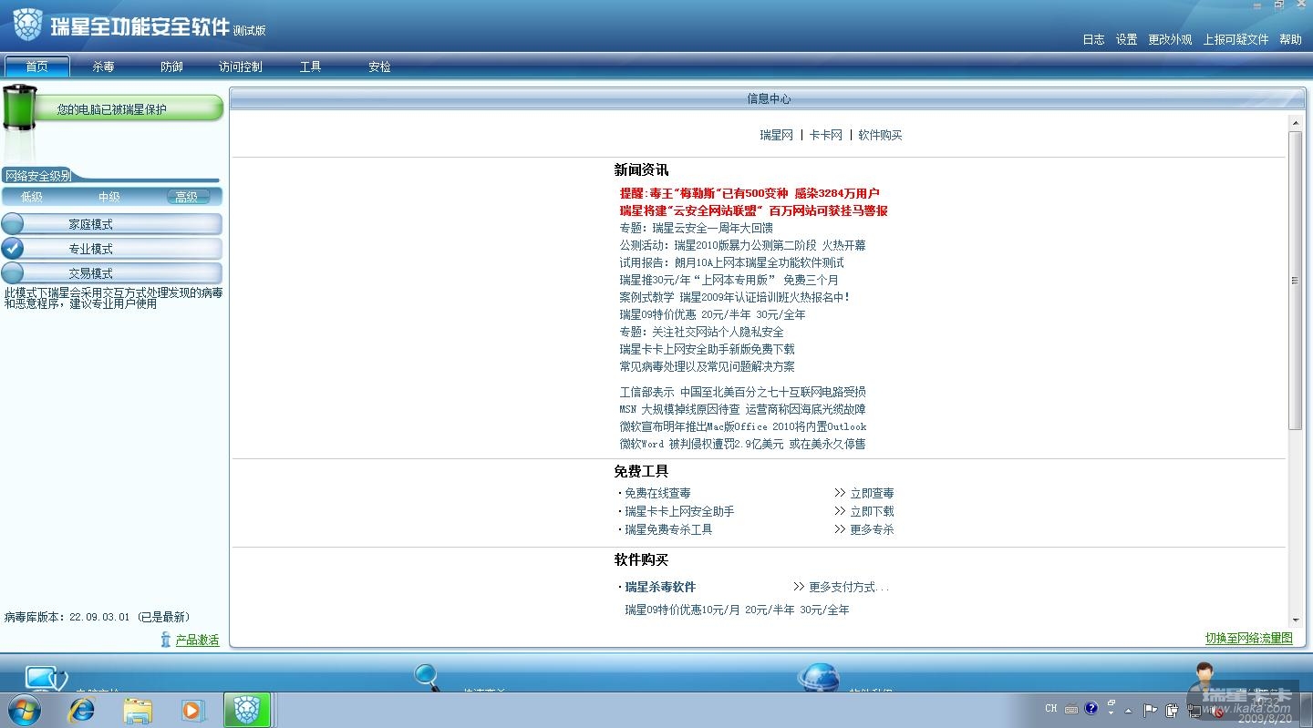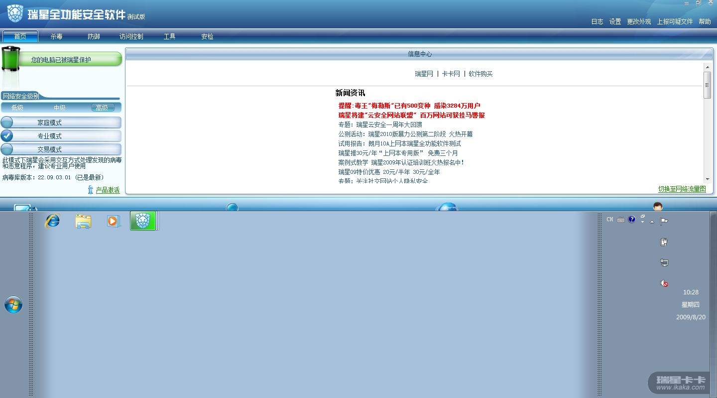 再将任务栏拖回原来的位置,这时如果切换到瑞星窗口,瑞星就会占据整个屏幕,任务栏消失