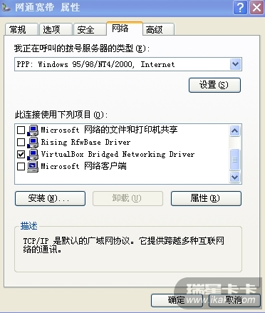 “网络”选项卡中 去掉 Rising RfwBase Driver 前面的勾后 选确定 退出 重新连接网络