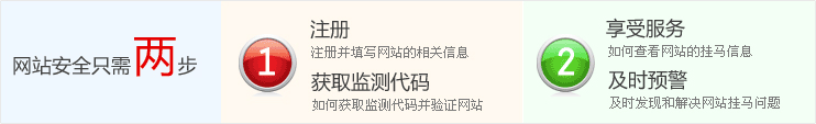 2、获取代码 为了保证能够及时的监测到您的网站的异常情况,和确认您的网站归属,需要您在您的网站的页面底部放置监测代码,监测代码以图标的形式体现,当您的网站出现异常情况时图标的颜色会自动改变,提示您的网站可能出现挂马情况。放置监测代码后您需要登录瑞星云安全网站联盟对您登记的网站进行验证。