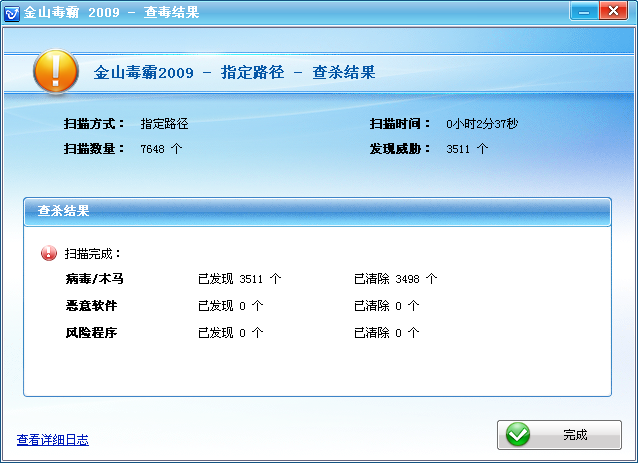 (注意:金山还扫描的内存,所以时间应该比图中短一些)