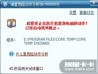 瑞星危险动作分析,阻止了我的游戏软件和一个CPU温度检测软件的正常运行