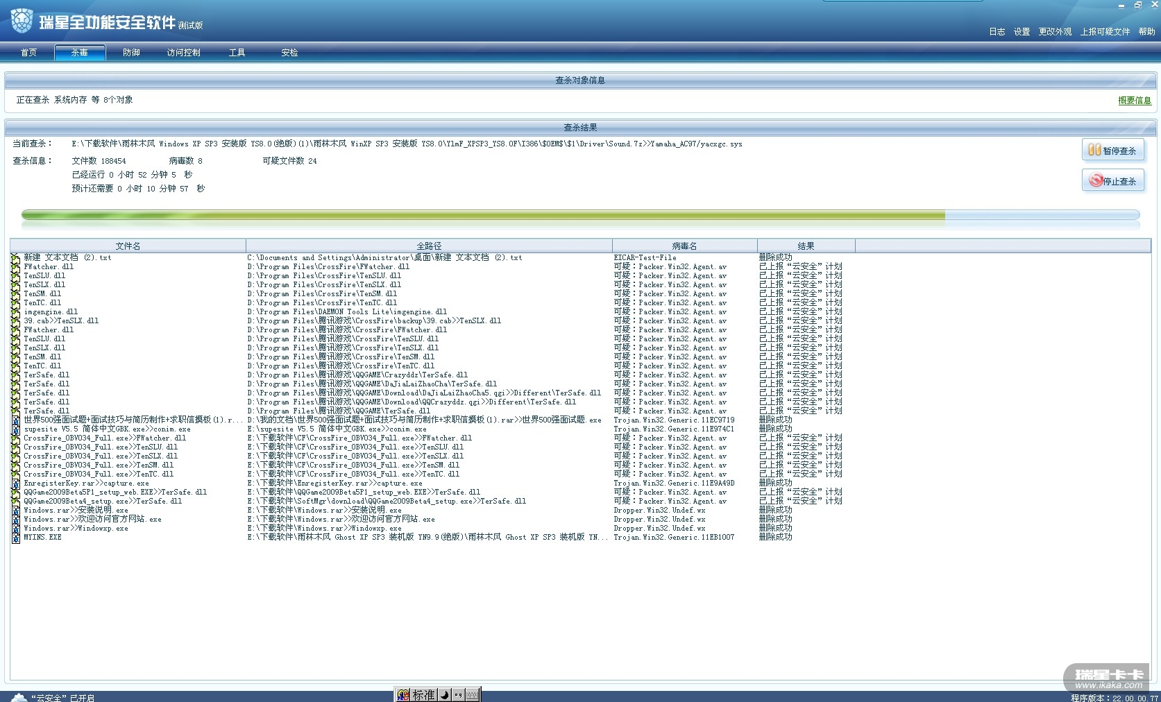 相信很多人也存在同样的问题,我在试用2010的时候进行全盘杀毒 老是出现Packer.Win32.Agent.av这个文件。瑞星2010 处理结果是上报云安全,之前用2009也是有这样的情况发生,但上报之后都没反映的存在,如果确定是病毒应该会有处理的,但如果不是病毒,那上报到云安全去,怎么就没反映的?