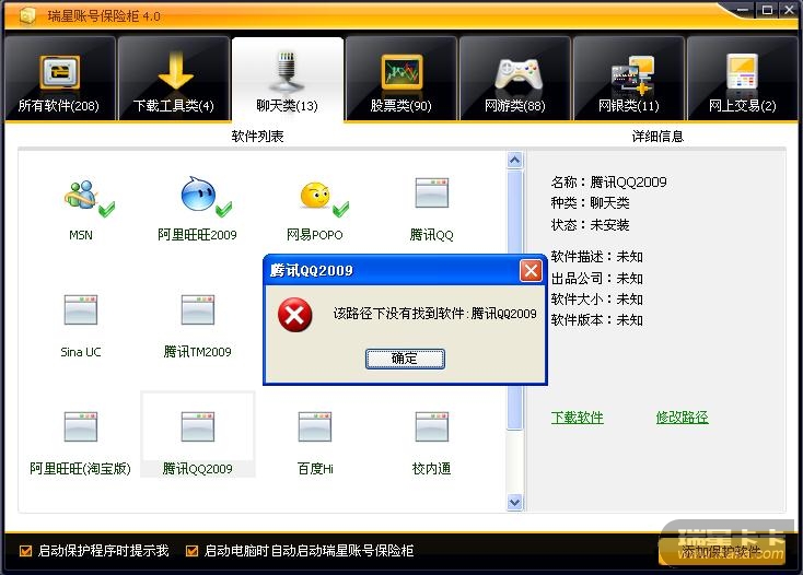 保险柜的问题,已经安装了QQ2009 SP3,为什么保险柜未识别到?