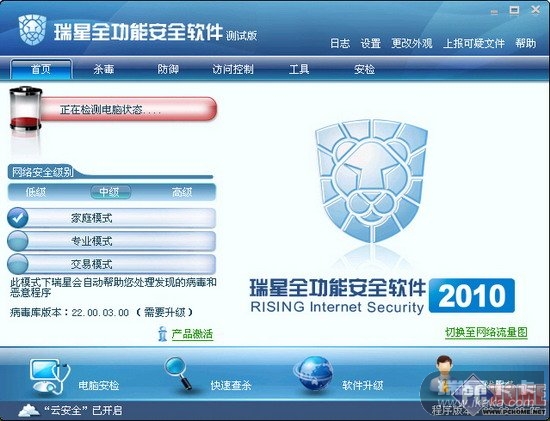 看到2010的界面,强烈要求建议瑞星公司在现有界面下,取消日志,更改外观,这两个选项,让界面干净一点,流畅简洁大方一点,不要做得过于多反而繁琐,不大气,相信用户还是比较聪明的回自己找到的。期待瑞星的改进。