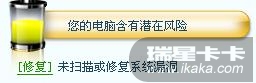 1.我觉的最好把卡卡的一些功能作到全功能软件里,比如说,漏洞扫描和修复。如果不安装卡卡就会显示,如图