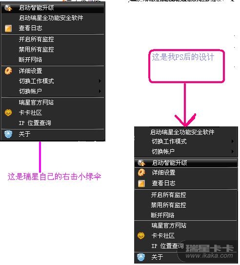 实话说在心理学的角度,和人的注意分配上来看 我感觉瑞星右击小绿伞 的版面有点不人性化