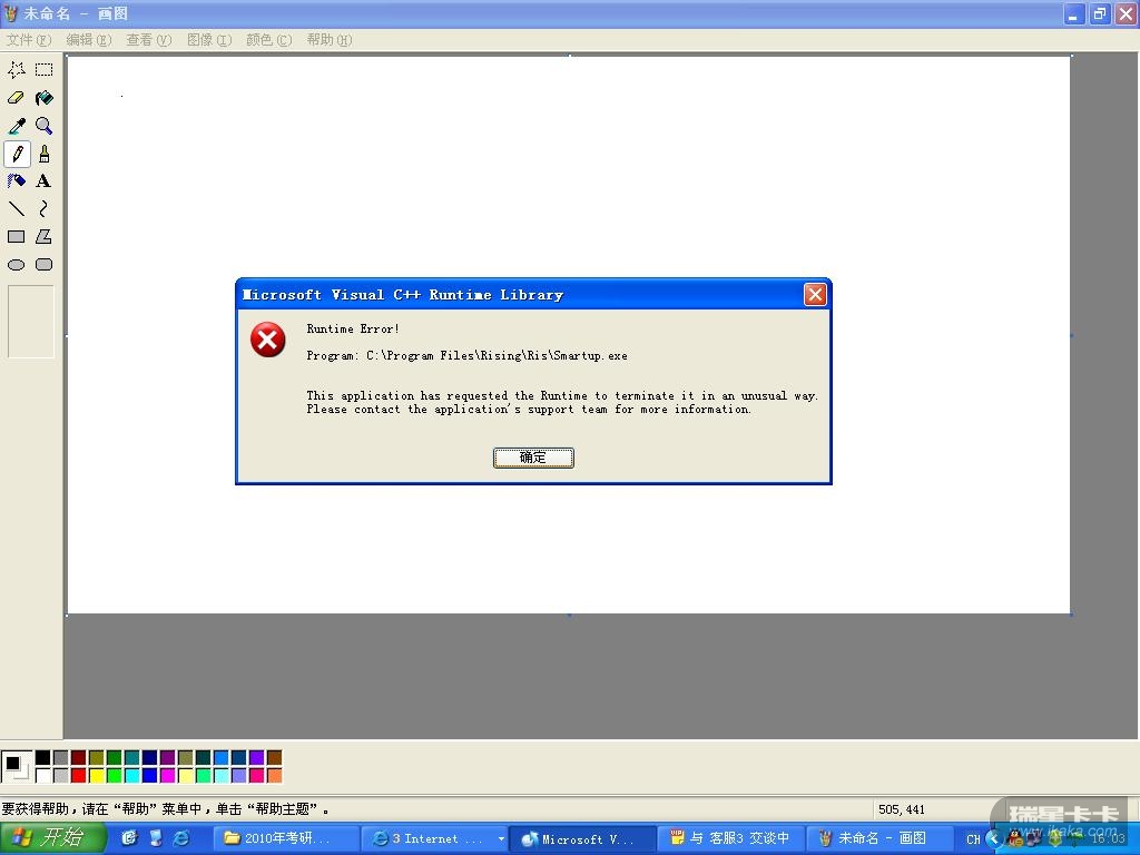 瑞星2010报错信息:microsoft visual C++ runtime library