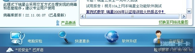刚刚将瑞星全功能安全软件升级到最新版本,截图如下: