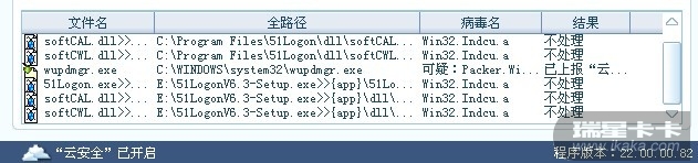 我从51logon的官网上下载的软件安装后运行没有报毒,而且单独对安装目录查杀也不报毒,请楼主提供几个报毒文件分析
