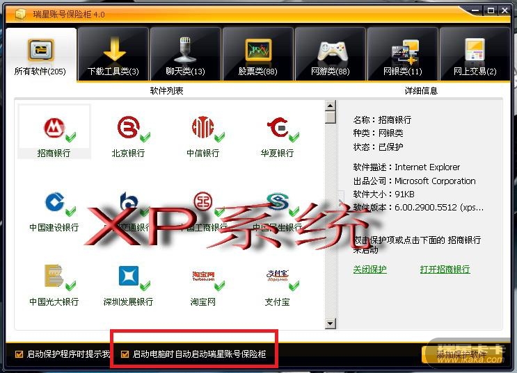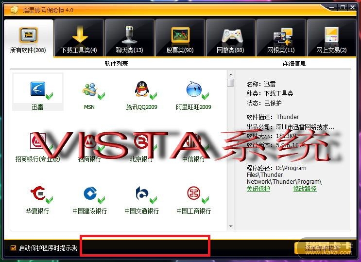 账号保险柜在XP系统下就有“启动电脑时自动启动瑞星账号保险柜”,在VISTA系统下就没有