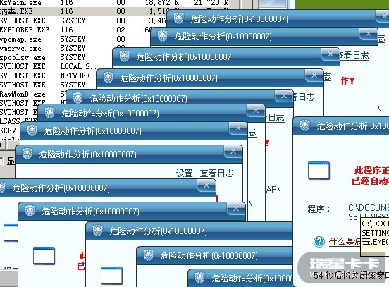 现象:瑞星危险动作分析右下角“无限”弹窗