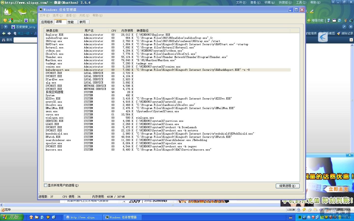 金山毒霸将病毒发现病毒并杀死后,再进入“支付宝”网站就成了: