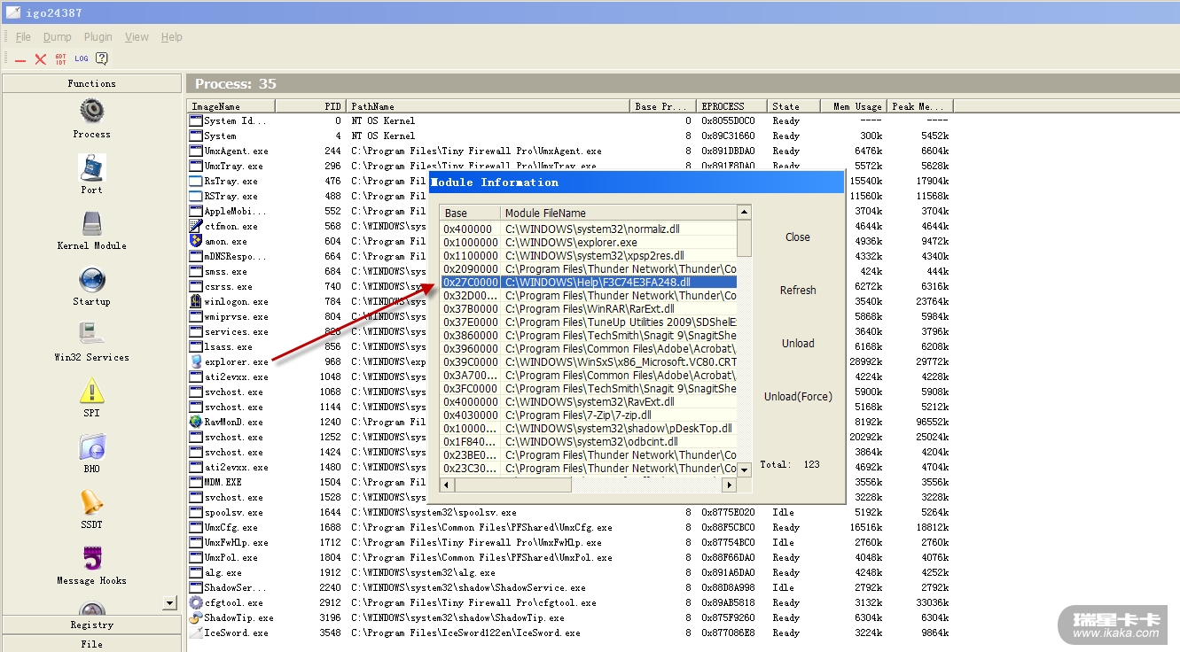 将其从explorer.exe进程中强制卸除后,此DLL才可手工删除。