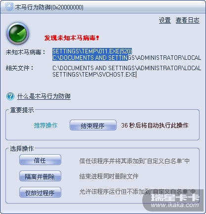此样本运行后会触发瑞星行为防御。点击 隔离并删除 后 病毒依然运作 会在windows文件夹里和temp文件夹里生成病毒衍生物 而011.exe又会触发主防 病毒会联网
