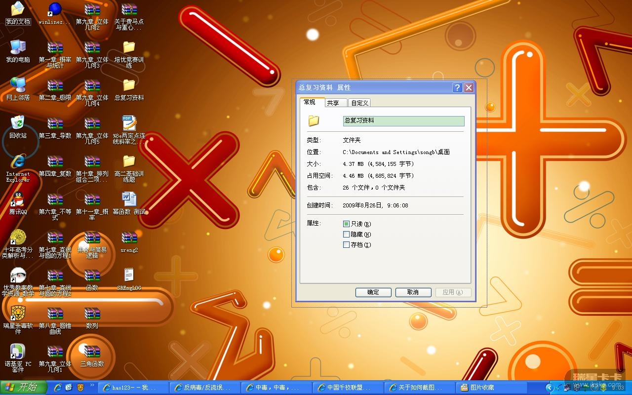 文件夹属性都是只读,修改不了,用瑞星查杀无毒,急盼解决!!!