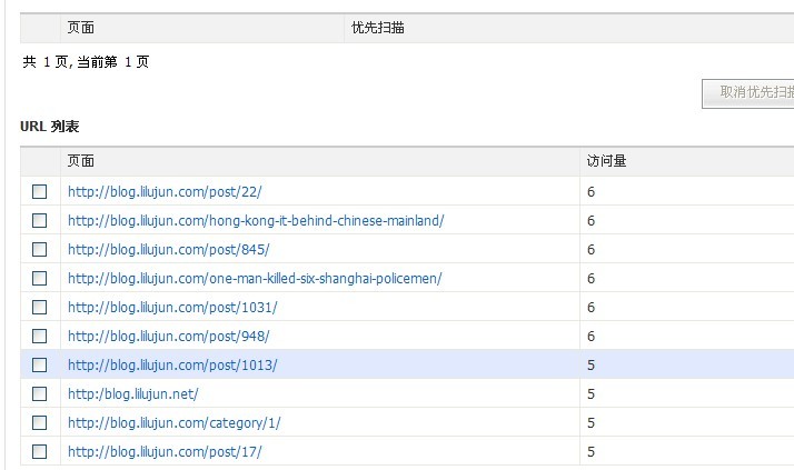 http://blog.lilujun.com/post/1013/ 为同一个页面,并且url一致。但这个网页url在结果中却出现两个结果,一个访问量6次,另一个访问量5次。