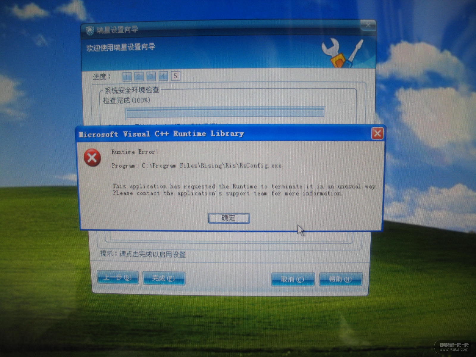 我用瑞星修复软件修复过,进行了重装,首先说“软件未经过windows徽标测试”,我选“继续安装” ,在网络程序设置时,点“确定”又没有反应,只能“取消”或关闭,一取消就显示“安装组件‘智能主动防御(RISule)错误,继续安装吗?”,不论选是或否都自动进行下面的安装,安装完毕进行设置后点“完成”时,又显示“Microsoft Visual C++ Runtime Library ” 好像是说“运行时间错误,C:\----\Ris\RsConfig.exe”之类的,确定后进入瑞星,还是不能进行“网络安全级别”的更改