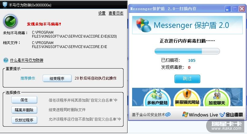 瑞星2010第三阶段终极测试--反馈27 误报MSN保护盾