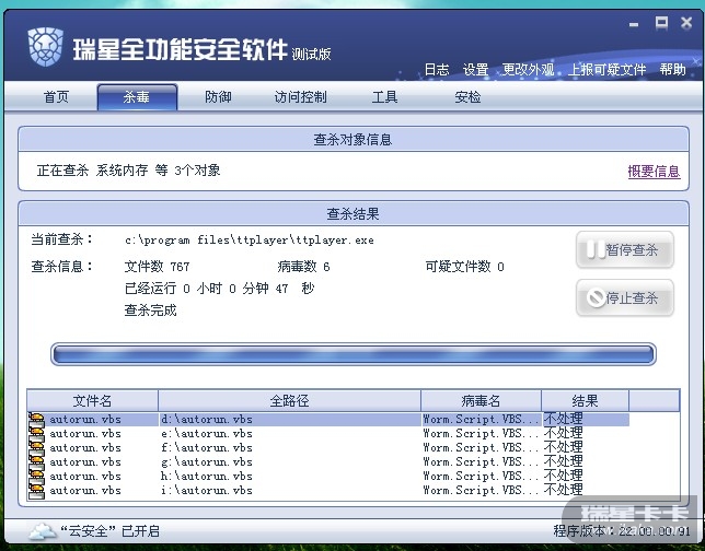 瑞星2009版查杀引擎测试