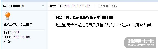 早先的版本托盘显示的是病毒库打包时间,但是目前的版本已经改成用户升级时间了