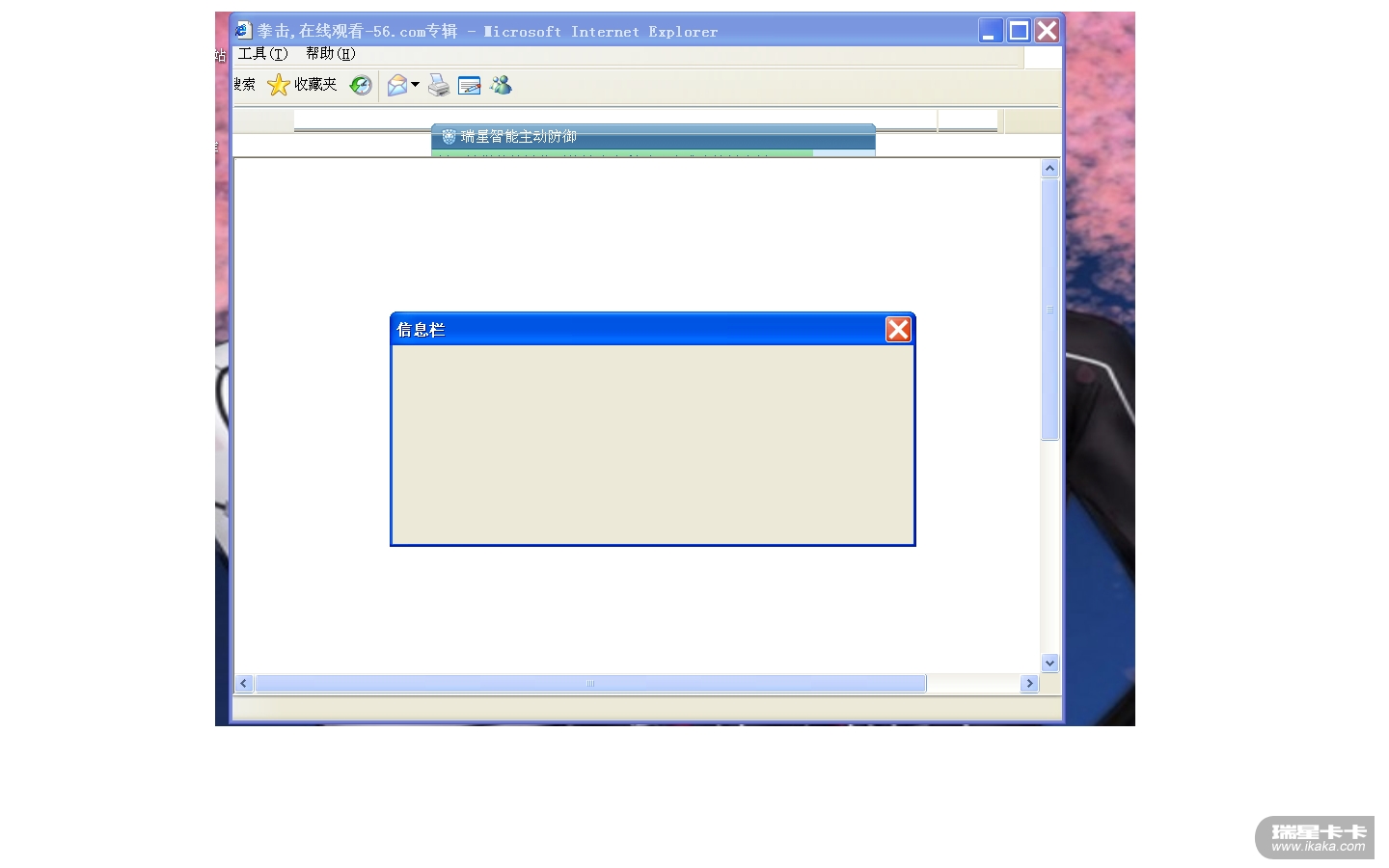 我家亲戚看56网视频的时候,它信息栏弹出"阻止一个窗口"的窗口,然后出现一个什么空白网页,之后出现瑞星网络拦截的窗口说什么此操作有可能被病毒利用,威胁等级为低.他好象点了什么关闭这之后那几个窗口(56网、信息栏、瑞星网络拦截)就变空白了定在那了关也关不掉的。我进行了全盘查杀也没杀到什么,这是怎么回事啊!!!!56网被挂马??????中毒了???