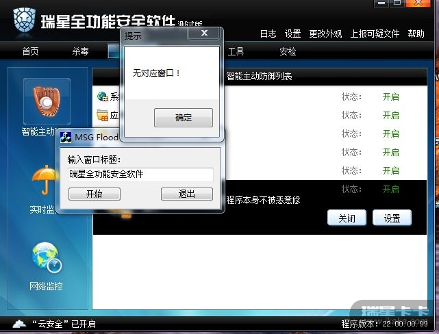 继续上次自保测试 补充一个向窗口发送垃圾信息的方法测试 据说磁碟机就是用的这种方法关闭杀软的 结果瑞星做了处理轻松拦截了