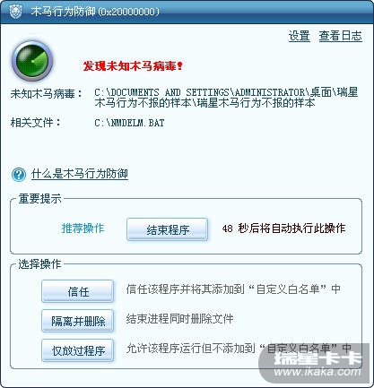 测试步骤:运行附件中的样本瑞星RIS2010不报,重启之后,或者是等病毒样本开始下载其它木马之后,瑞星RIS2010被关闭.