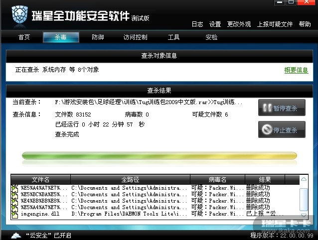 今天发现了个Bug每次装DAEMON Tools Lite 时瑞星2010都会误杀掉,导致虚拟光驱不能用。开始以为是下的安装文件有毒最后在迅雷,360和天空等等 下载的安装都会报毒。希望瑞星的工程师在正式版中解决这个问题。