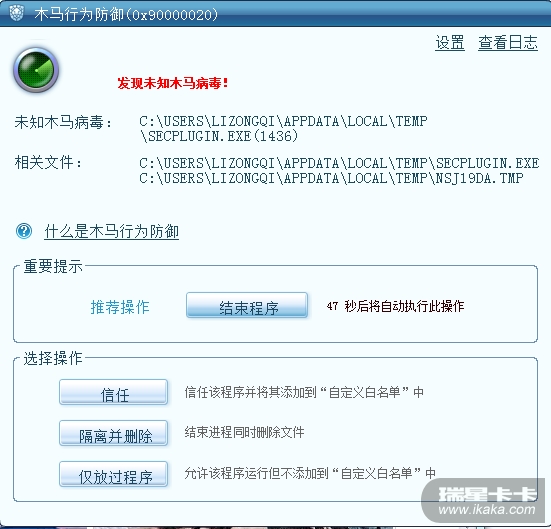 不是误报,是行为监控发现的,如果确认该文件不是木马,可添加到信任区。