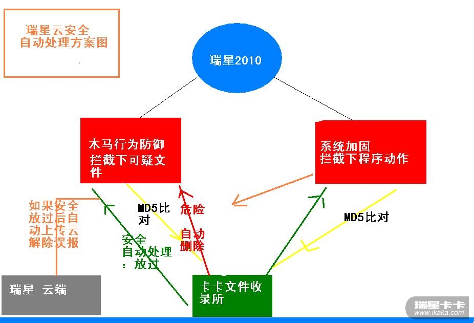 大概意思就是要瑞星在处理可疑行为时候去比对服务器上收录的文件md5来判断