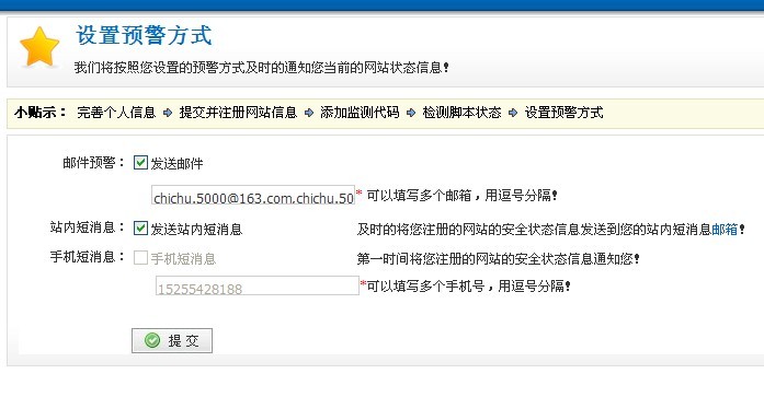 预警方式,个人理解应该是网站如果被挂马了会通过邮件方式或站内短消息通知