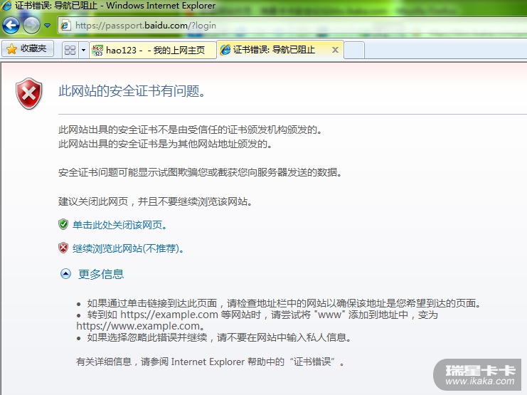我用的是Firefox浏览器,在打开或登陆一些网站,比如打开Firefox插件、登陆Google或Baidu的时候,都会弹出一个提示,说此网站证书不合法。