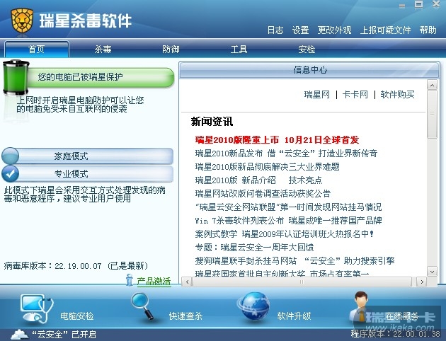 我的瑞星是伴着我从2008一路走来的,这是软件截图:
