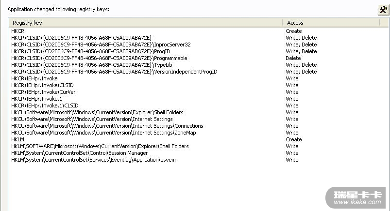 注册表改动: