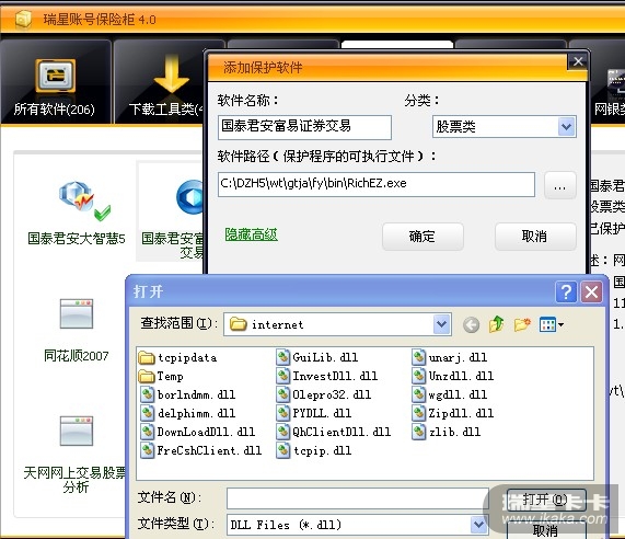 国泰君安的交易平台软件:国泰君安证劵交易作为前者的附属软件,在前者已经列入保护列表时自己却被忘记了。另外,添加第三方可去读程序,默认是DLL?为何要默认DLL而不是EXE,不方便,请改进