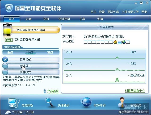 首先保证切换到专业模式下,打开瑞星软件,在左侧有模式切换,选择“专业模式”
