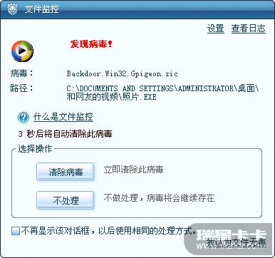 文件监控发现病毒时候的对话框样式如下