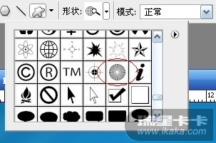 (2)添加散射光条文。新建一层,左边工具栏选择-圆角矩形按钮-自定义形状按钮。找到下面这个形状,如果没有可以点击右边的小箭头,追加形状。